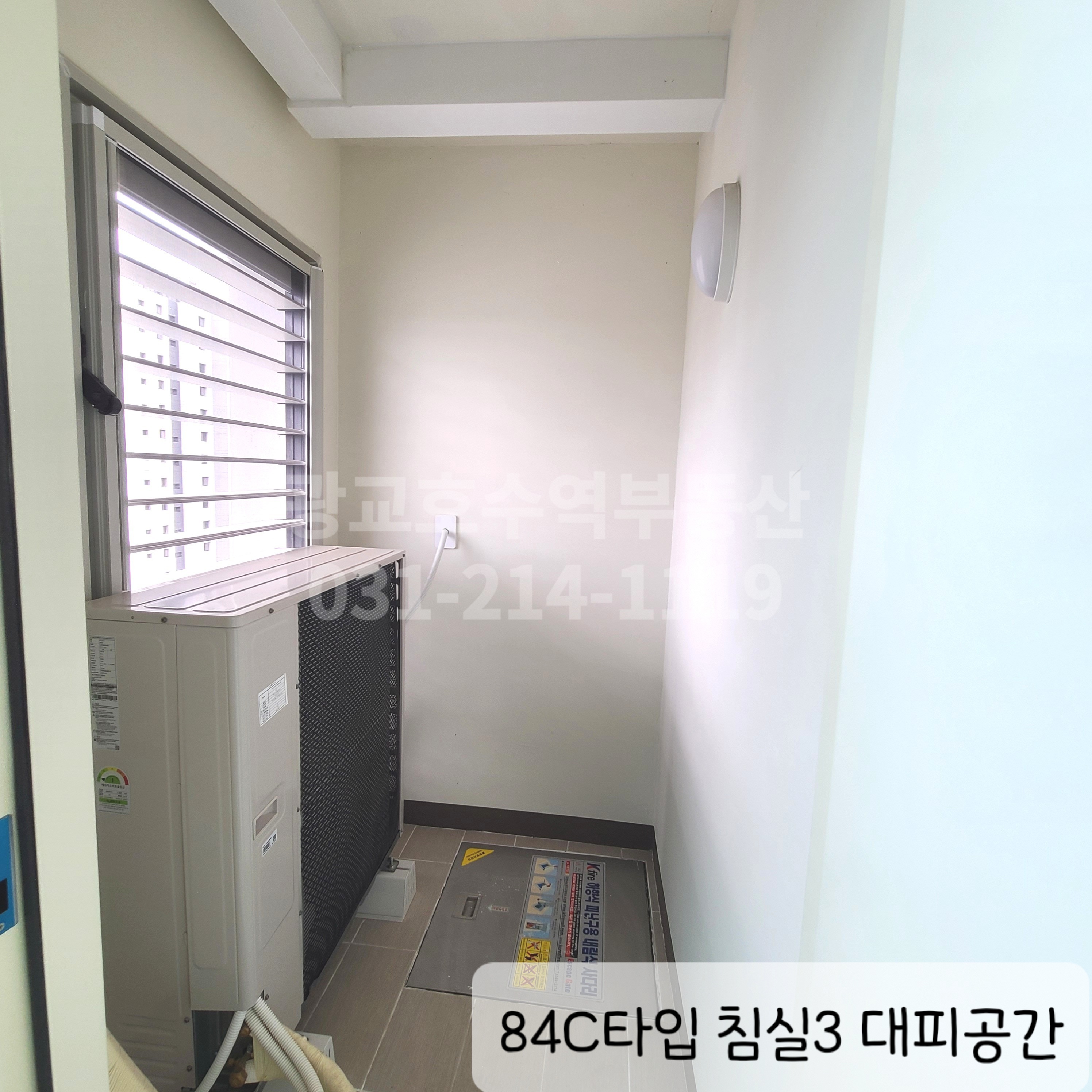 사진처럼 대피공간에는 실외기가 있으며 바닥에 내림식 사다리가 설치되어 있습니다.
